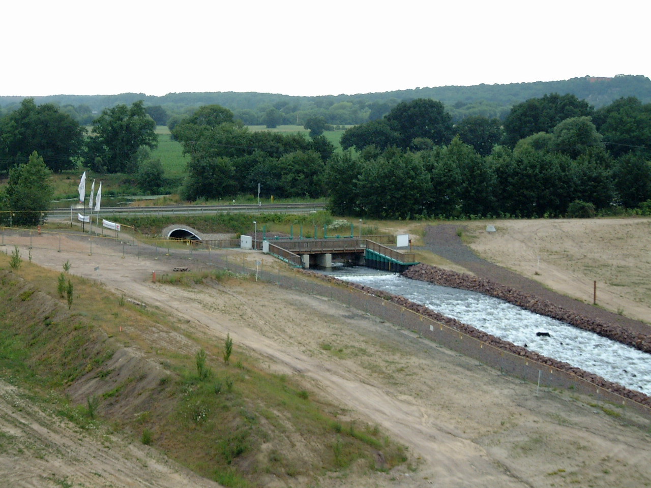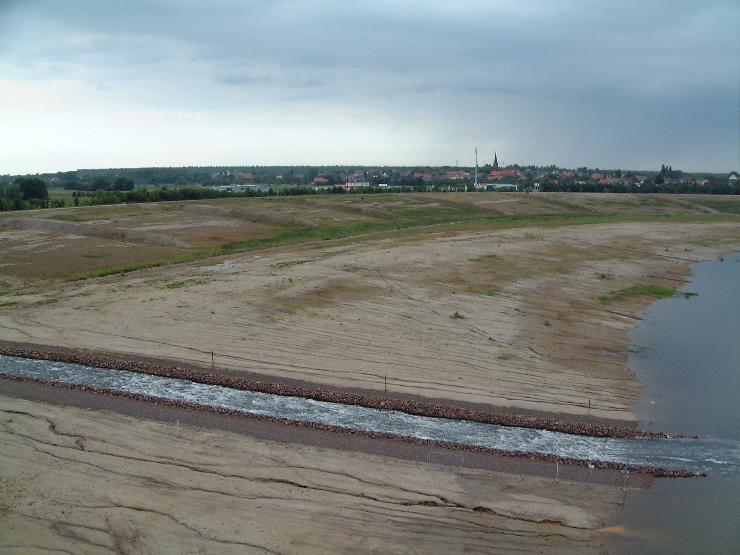 Mit der Inbetriebnahme des Flutungskanals und des Deichbauwerks begann die kontrollierte Einleitung von Muldewasser in das ehemalige Tagebaurestloch. Über diese technische Anlage wurde das Wasser gezielt aus der Mulde entnommen und in das künftige Seebecken geleitet.